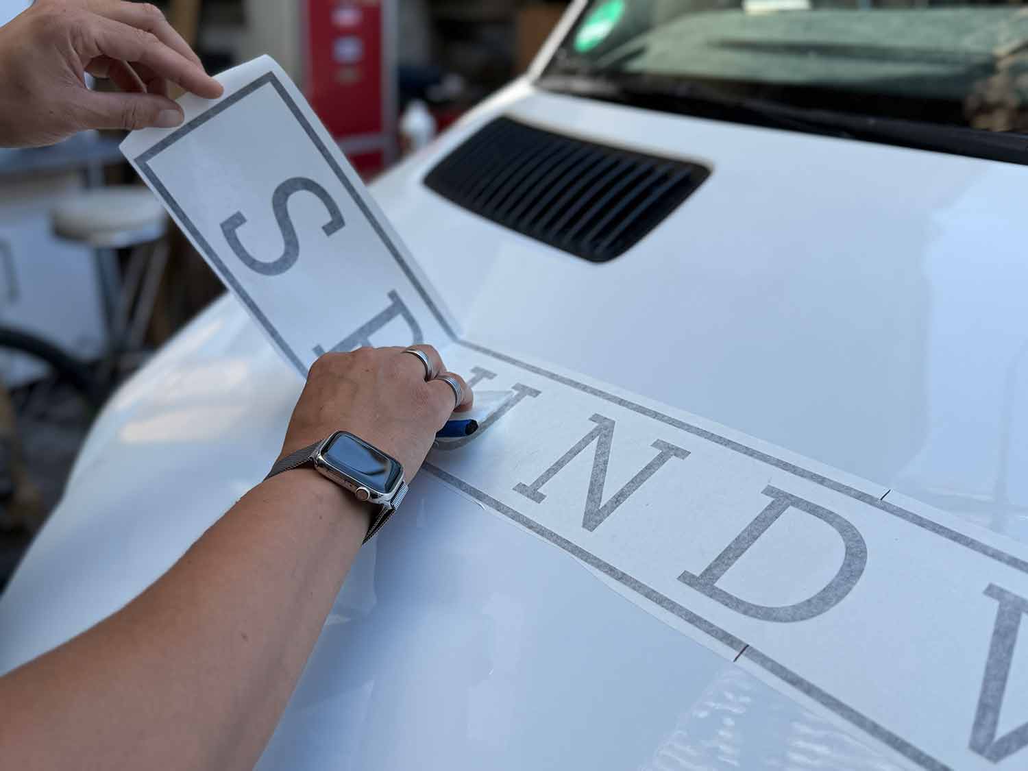 Ihre Beschriftung entsteht aus langlebigen Markenfolien – exakt geplottet und sorgfältig vorbereitet für ein perfektes Endergebnis.